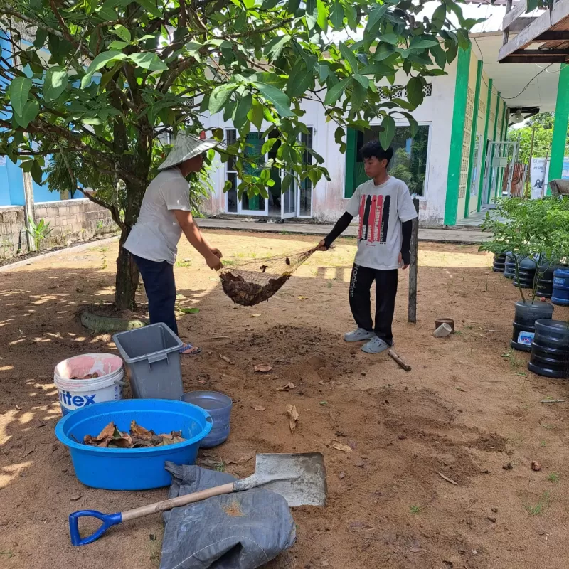 Kegiatan ini merupakan bagian dari upaya PKBM Khadijah dalam membekali peserta didik dengan keterampilan praktis yang dapat diterapkan dalam kehidupan sehari-hari. Dalam proses pembelajaran, peserta didik diajarkan untuk mengenali jenis-jenis limbah organik yang berasal dari pekarangan, seperti daun kering, sisa sayuran, dan sampah alami lainnya, yang dapat dimanfaatkan sebagai bahan dasar pembuatan pupuk.